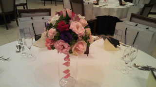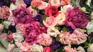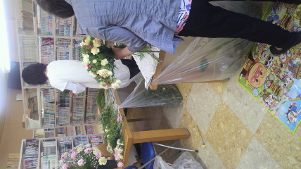 様々な色のバラやあじさいの中から好みのものを選んで組み合わせます。