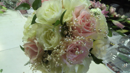 ウェディング用ですが、ピンクのバラとパールも入ってかわいい感じに…